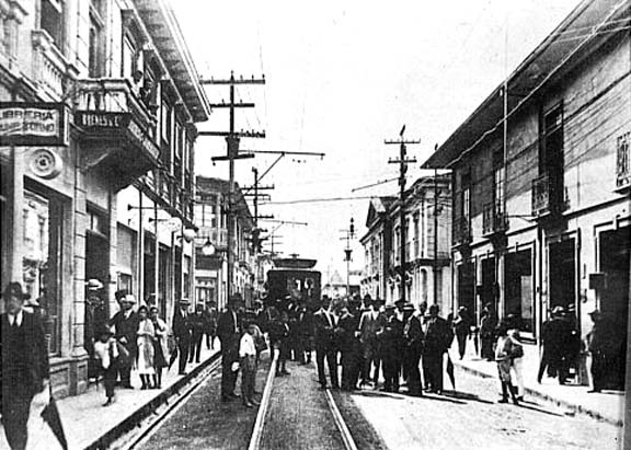 Ante los ojos jubilosos de sus tranquilos parroquianos, aquella máquina de leves chirridos empezó a deslizarse por rieles que atravesaron diversos sectores del casco central de una localidad fundada en 1737, y que había sido declarada ciudad por el reino español menos de un siglo atrás.