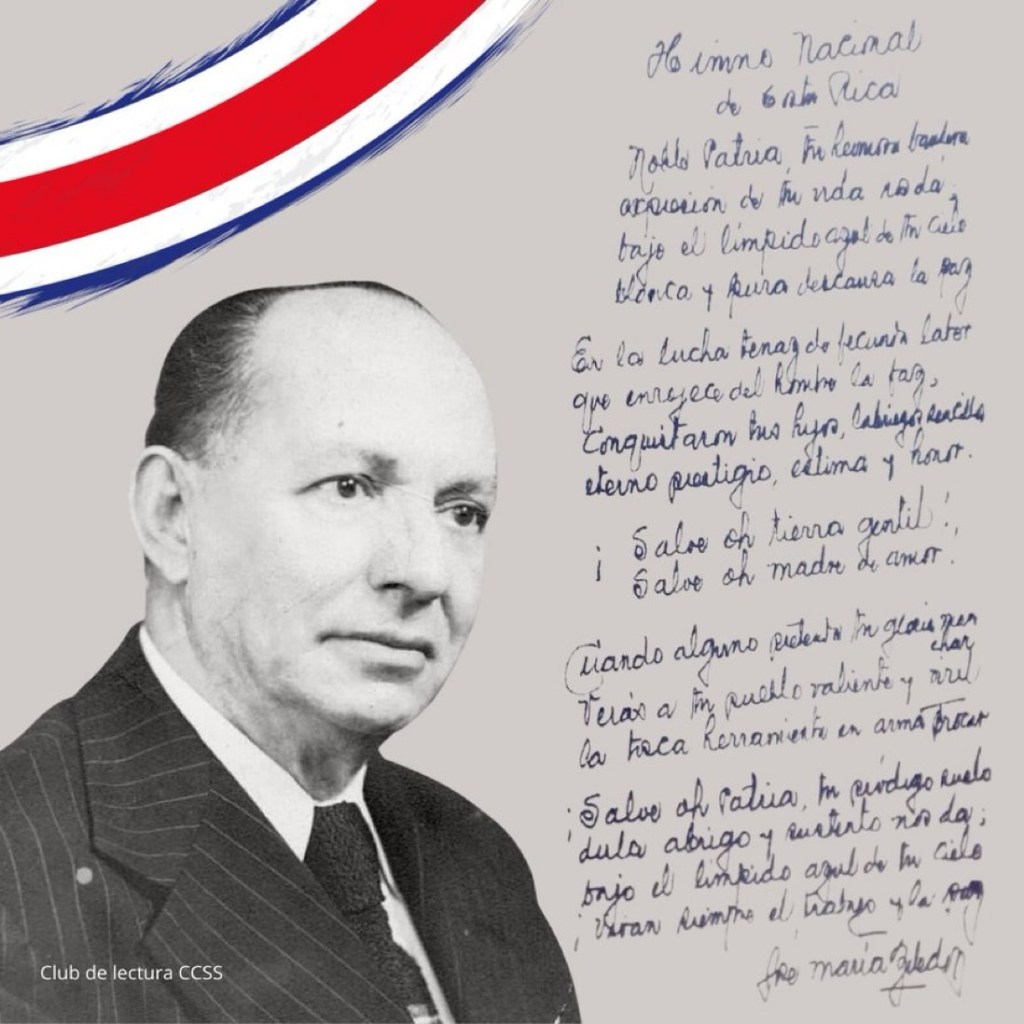 Letra del himno nacional de Costa Rica, escrita por José María Billo Zeledón, declarado en 1949.