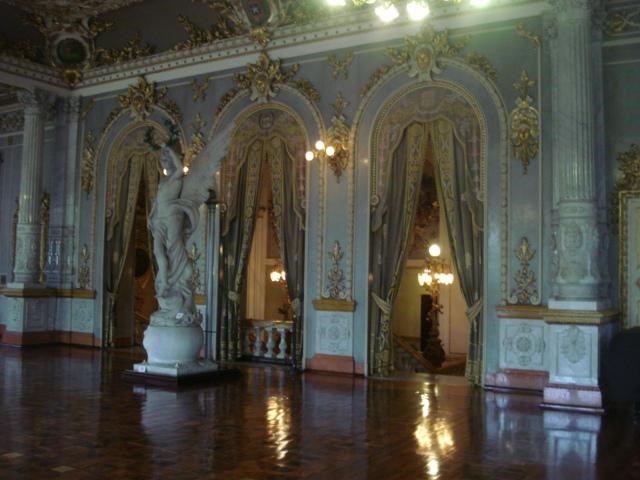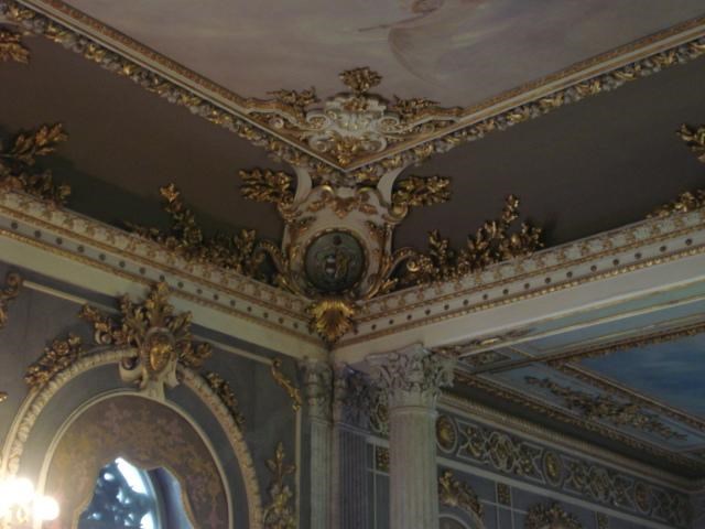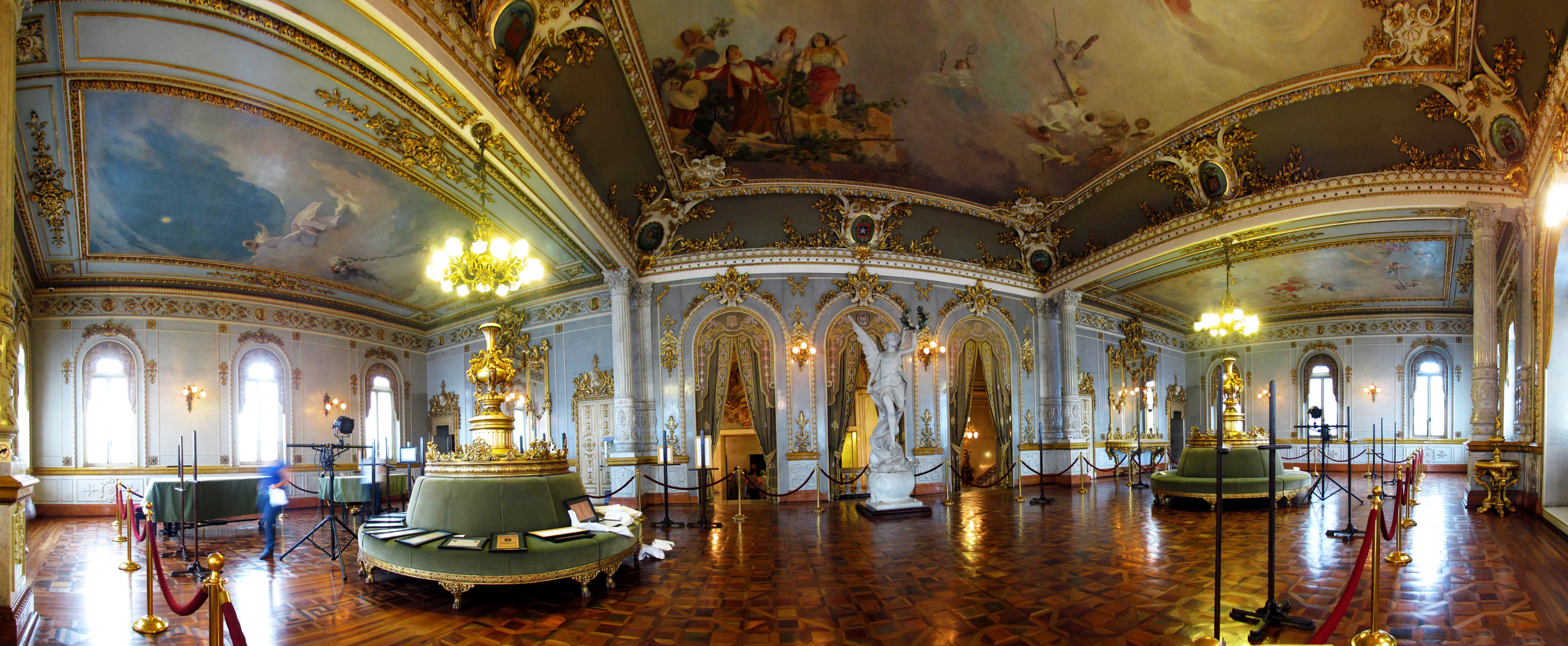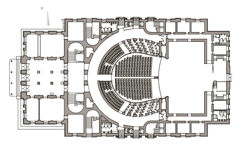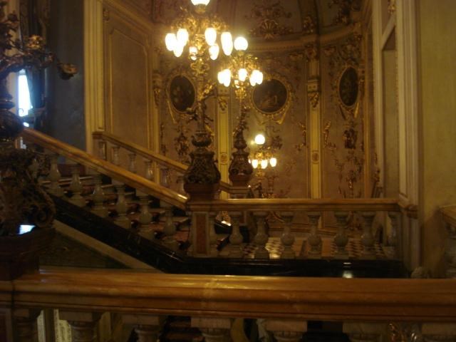 En el interior de la obra arquitectónica se puede apreciar un delicado estilo neo-renacentista con imponentes lámparas de puro cristal y columnas de mármol de Carrara.
