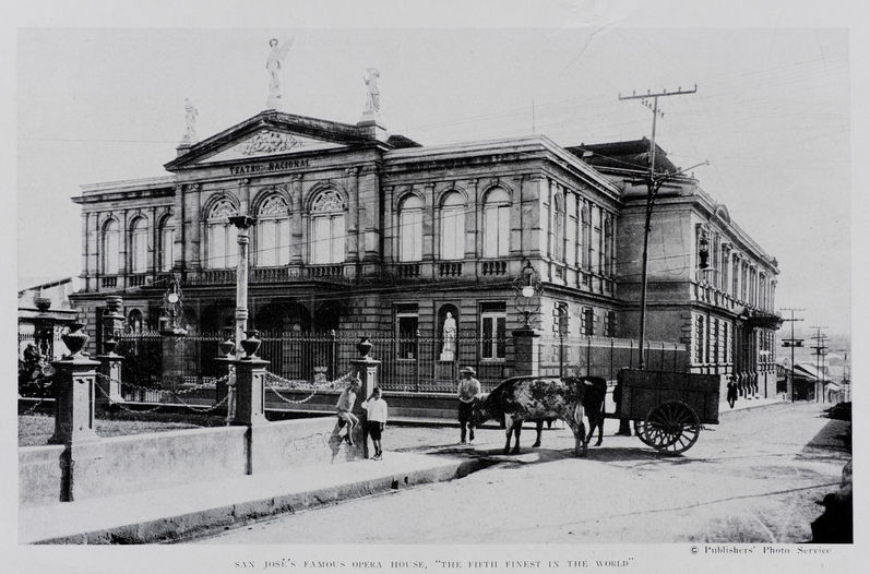 La construcción del Teatro Nacional se inició en enero de 1891, una vez que el Decreto N° XXXIII del 28 de mayo de 1890 ordenara su construcción, declarándola como «obra nacional»; cuando la ciudad de San José tenía no más de 20.000 habitantes.
