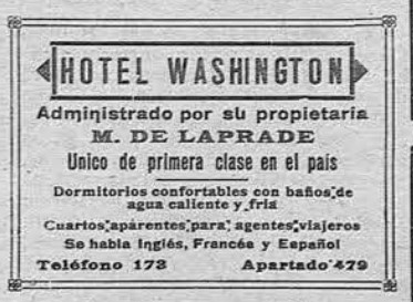 Como vemos en el anuncio era un hotel de primera clase en el país y se destacaba por dormitorios confortables con baños de agua caliente y fría. Sus servicios se ofrecían a todo tipo de viajeros. También se caracterizaba porque se hablaba inglés, francés y español.