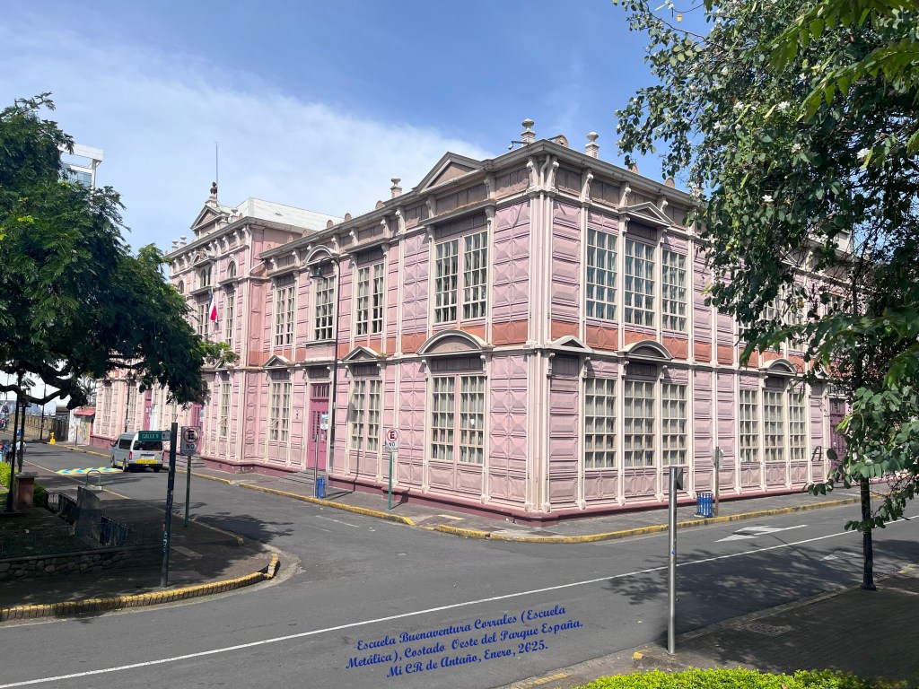 El gobierno de Costa Rica compró el edificio, influenciado en gran parte por la revolución del período del hierro. El uso de la estructura era para dos escuelas primarias con capacidad de albergar 800 estudiantes, combinando a los muchachos en una sección y a las muchachas en otra. La fachada del edificio está adornada con un busto de Mimerva, simbolizando a la “diosa de la sabiduría”. Al día de hoy, el Edificio Metálico se yergue como una magnífica pieza de arquitectura que evoca el orgullo y la hazaña histórica que Costa Rica logró al construirlo.
