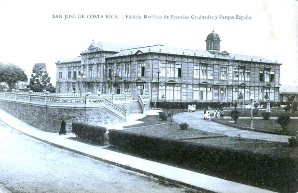 El gobierno de Costa Rica compró el edificio, influenciado en gran parte por la revolución del período del hierro. El uso de la estructura era para dos escuelas primarias con capacidad de albergar 800 estudiantes, combinando a los muchachos en una sección y a las muchachas en otra. La fachada del edificio está adornada con un busto de Mimerva, simbolizando a la “diosa de la sabiduría”. Al día de hoy, el Edificio Metálico se yergue como una magnífica pieza de arquitectura que evoca el orgullo y la hazaña histórica que Costa Rica logró al construirlo.