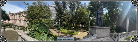 Hermosa vista panorámica de principios del siglo XX, del costado sur del actual Banco Central (BCCR), el fotógrafo estuvo posicionado cerca de donde hoy está la tienda Simón, sobre Avenida Central. En primer plano se observa, la Plaza de la Artillería.