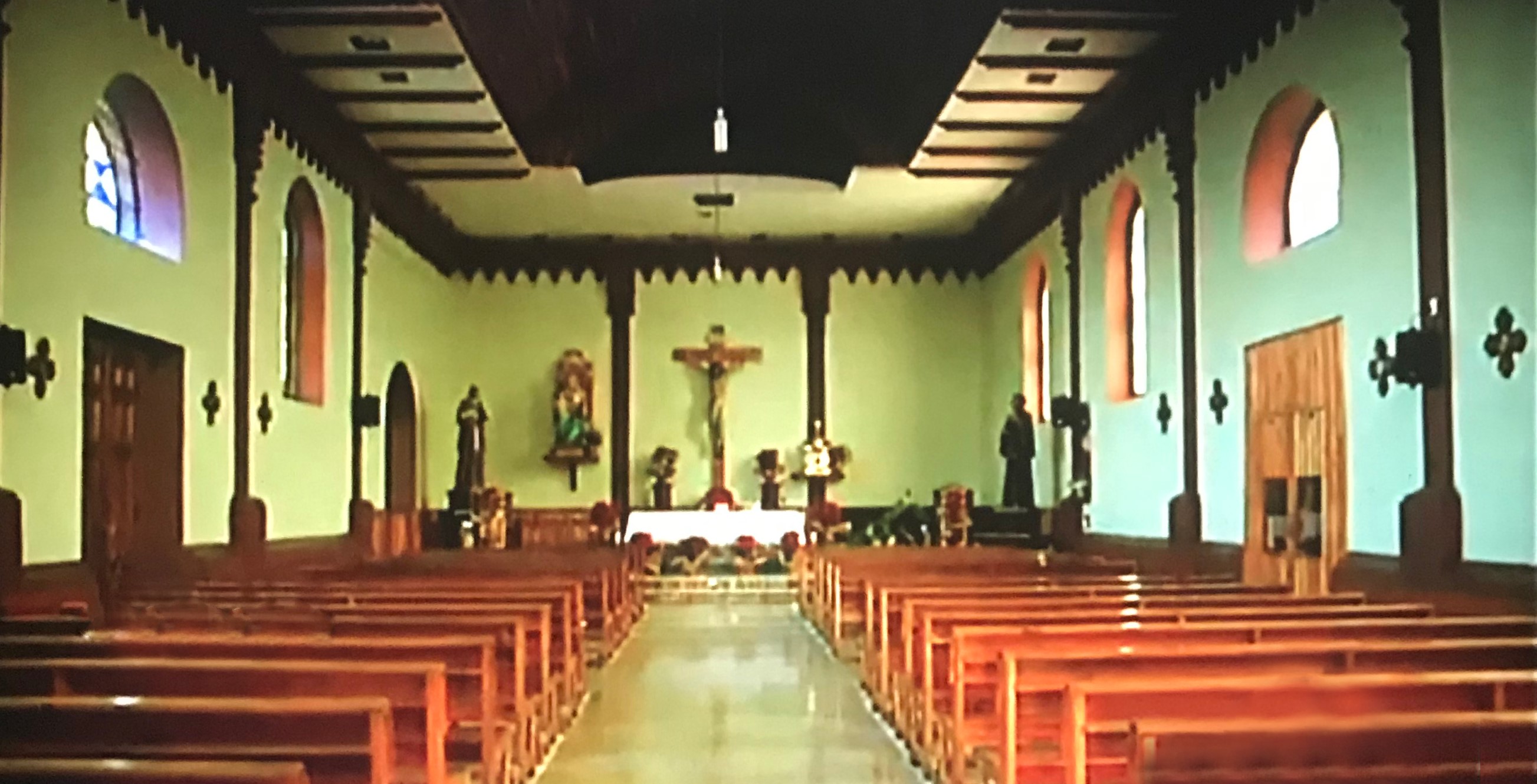 La nave central está ligeramente acentuada por medio de un cielo falso abovedado, mientras que las naves laterales, de menor altura, se cierran con un sencillo cielo raso horizontal, confeccionado con tablilla “machimbrada”.