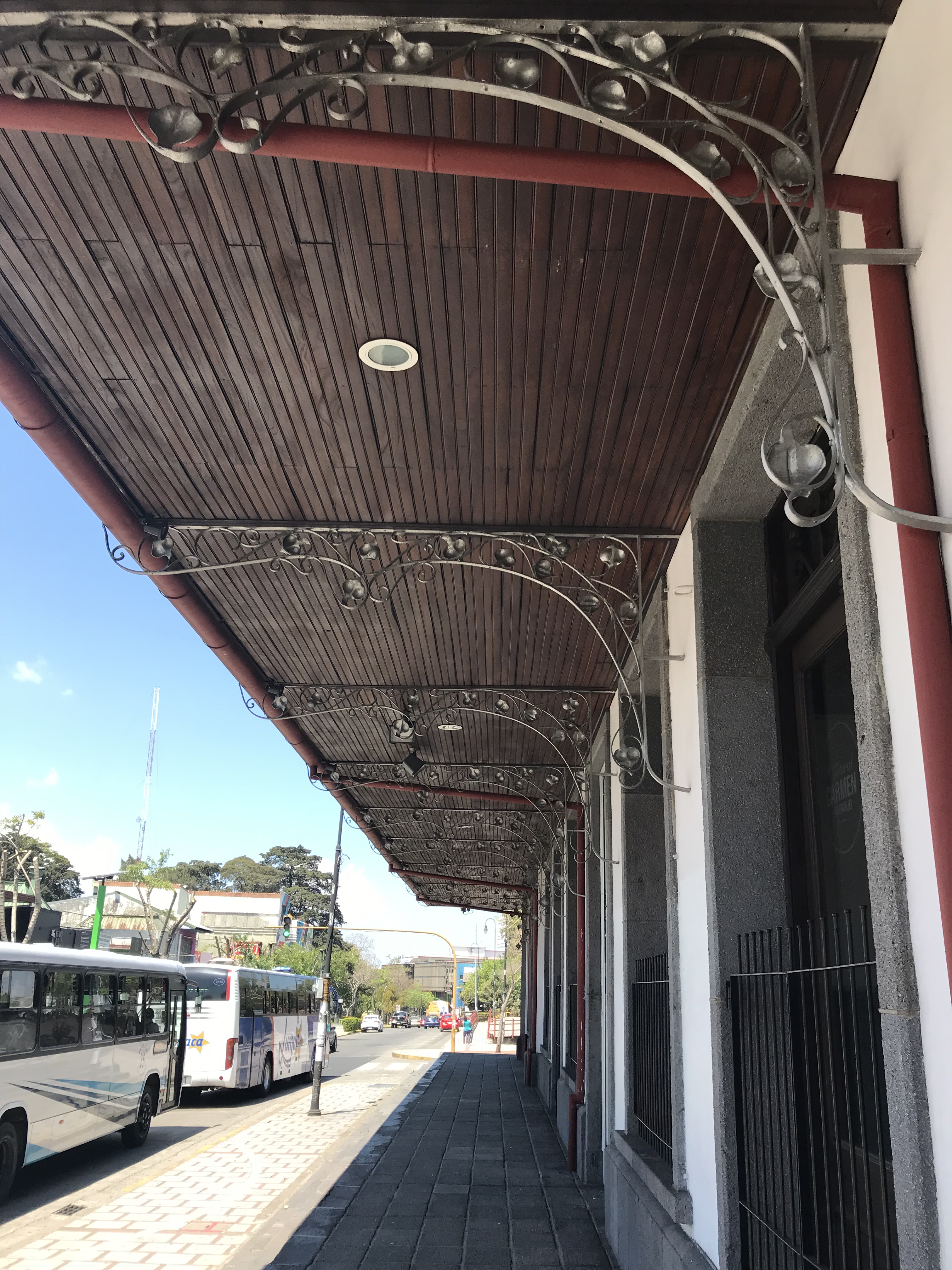 Sigue inmediatamente un gran alero sostenido por ménsulas forjadas –modernistas también–, que enmarca el rectángulo por su frente y a ambos lados.