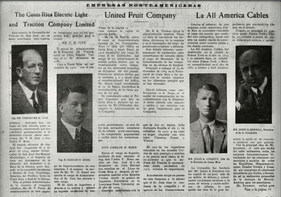 Personajes que estuvieron a cargo de la Compañía bananera en C.R.: