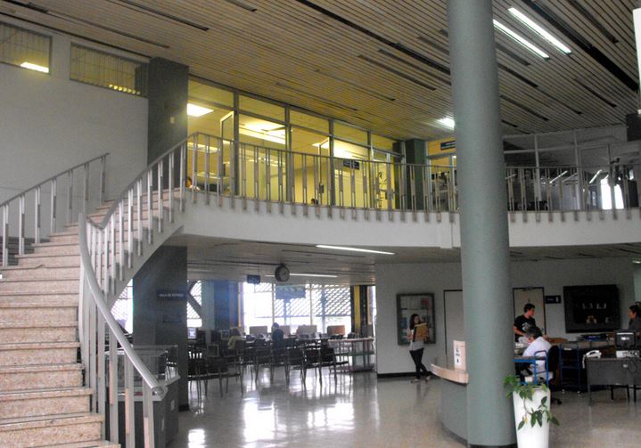 De dimensiones horizontales y compuesto por dos cajas superpuestas, la una transparente y la otra perforada, ambas con protección climática: la primera vidriada, con parasoles metálicos, y la segunda con paneles prefabricados de hormigón. Ambos volúmenes nivelan la irregularidad del terreno y le permiten al arquitecto ubicar en la base y sobre calle lateral una galería. Internamente se manejan grandes áreas de planta libre. En ellas se ubican las salas de lectura y los estantes de libros.