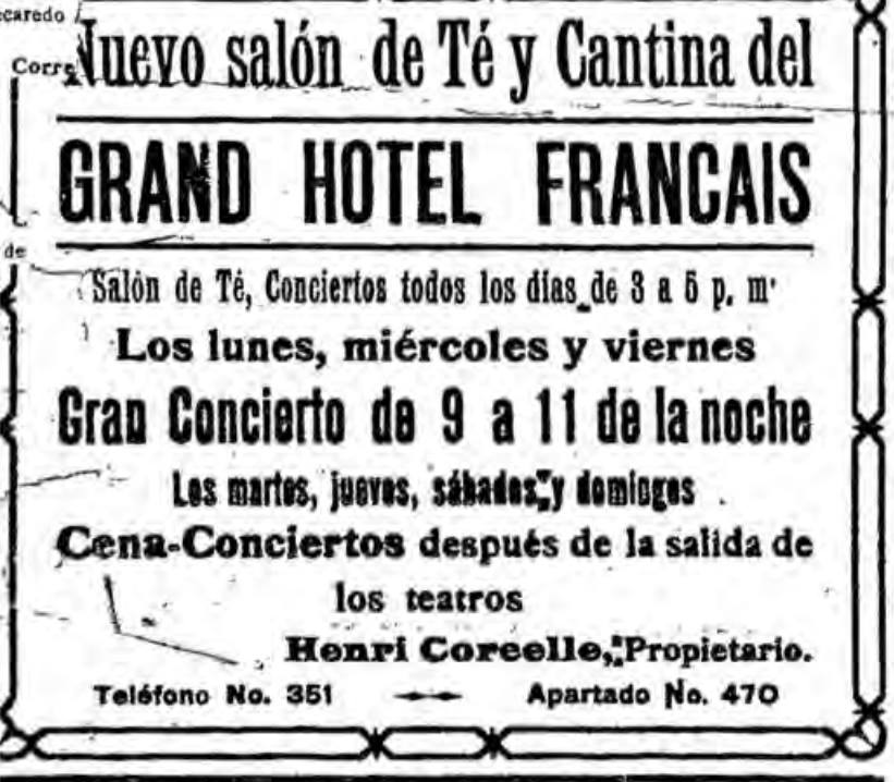En enero de 1923 se anuncia la compra del terreno diagonal al Teatro Nacional, donde se construirá el nuevo edificio para el Gran Hotel Francés de Corcelle.