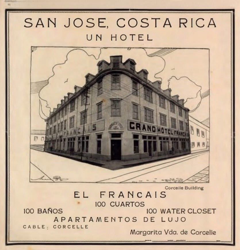 El francés Joseph de Vigny fundó el  Hotel Francés en 1872 en plena  Avenida Central, entre las calles 4 y 6. Monsieur Vigny falleció en el año 1900 y el hotel lo adquiere el  mexicano Nicómedes Serrano; seguidamente en 1912  pasa a manos del francés Henry Corcelle Bacquet.