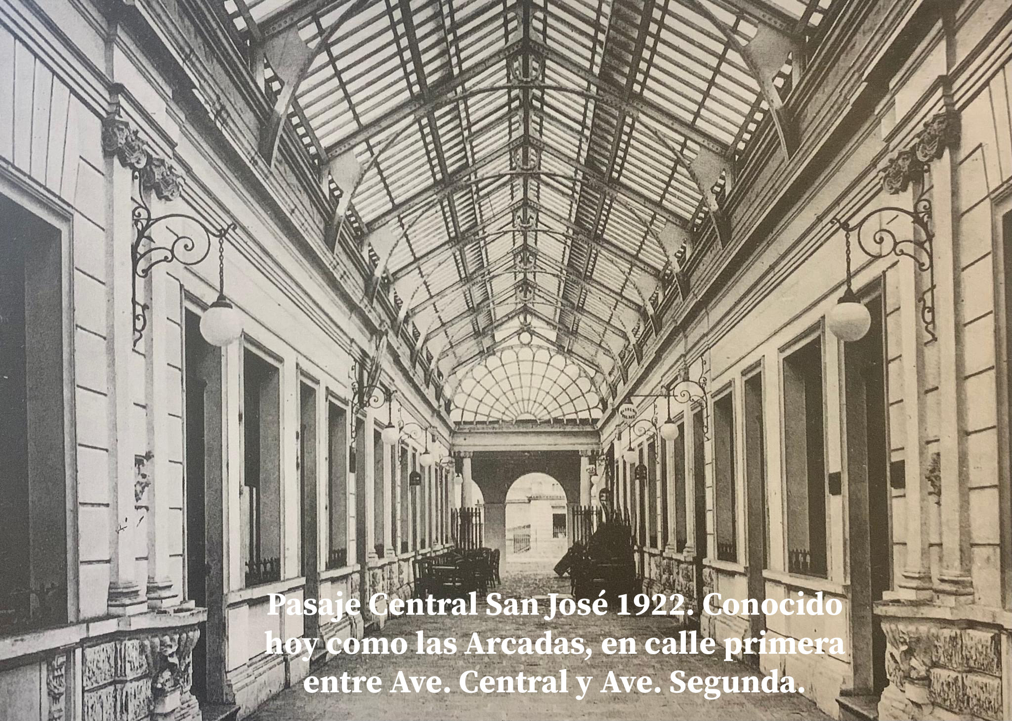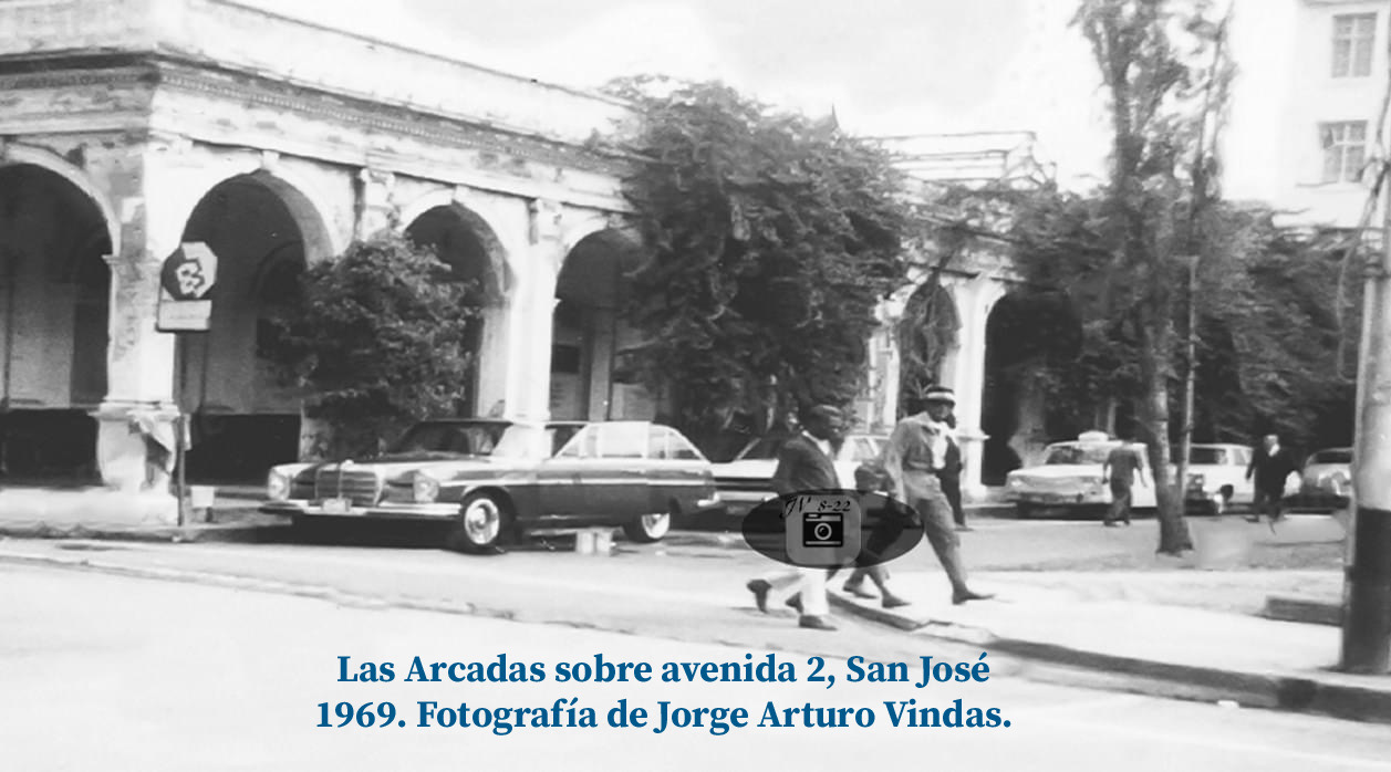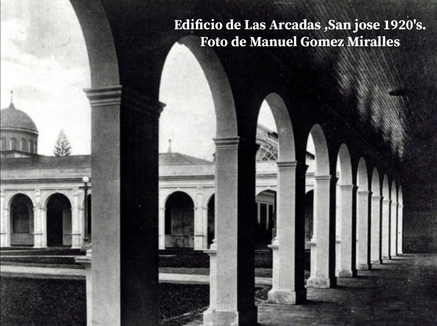 Las Arcadas contemplaban el costado Norte y Oeste de la plaza frente al Teatro Nacional a la cual se le venía llamando desde 1902 “Plaza del Teatro”, por moción en 1904 se bautiza con el nombre “Plaza de Mora” en honor al primer jefe de Estado. Al pasar de los años y por la costumbre, la plaza fue más conocida como “Plaza de Las Arcadas”.
