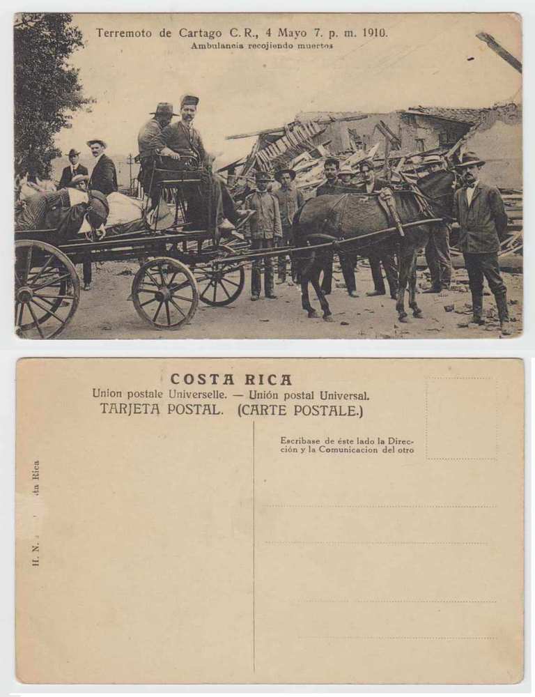 Tarjeta Terremoto Cartago 20 julio, 2018 768 × 1000 Tarjetas Postales de Costa Rica de Antaño Terremoto Cartago y ambulancia recogiendo cadaveres, 1910