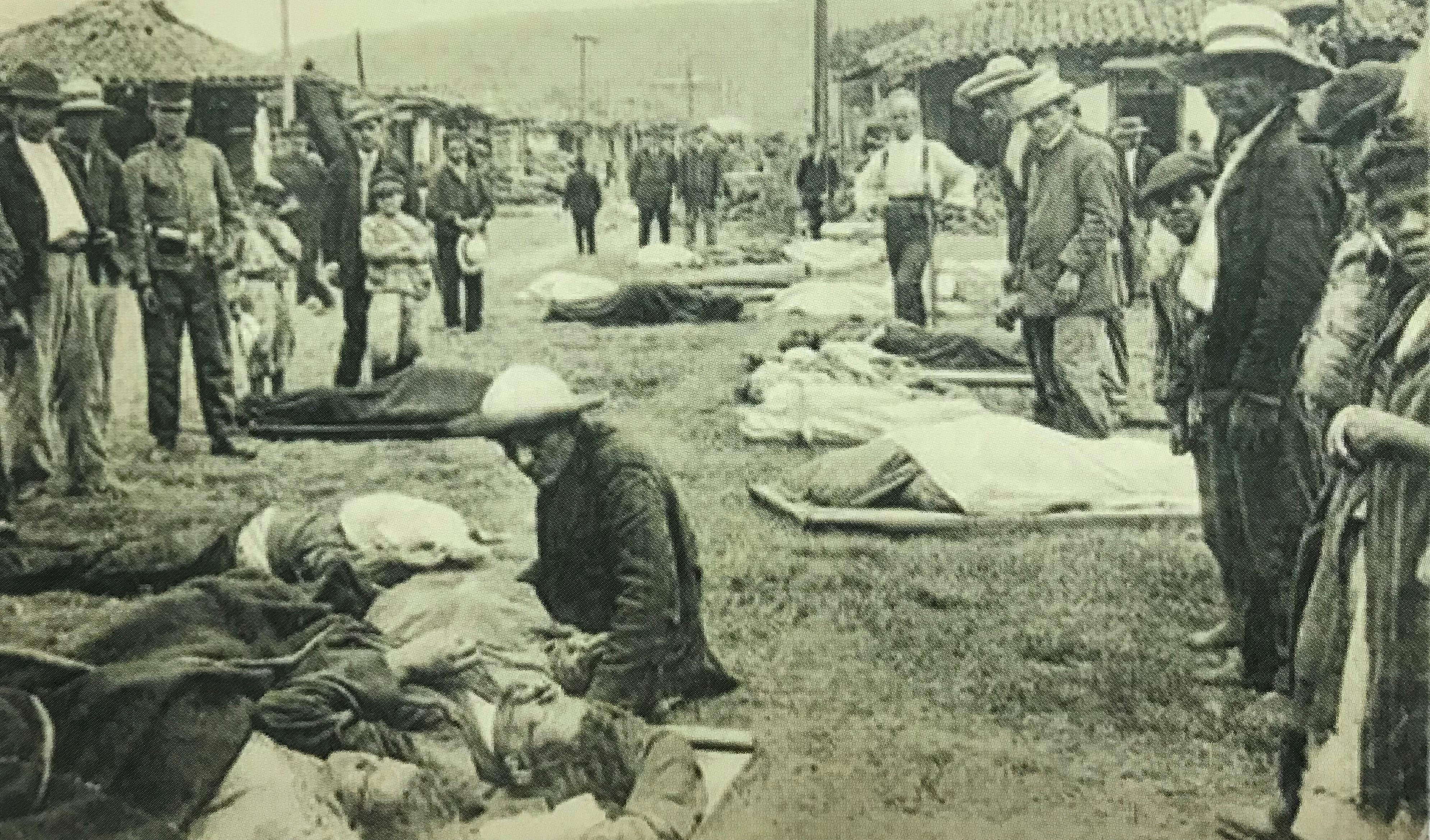 IMG_2723 22 marzo, 2019 3980 × 2338 Terremoto de Santa Mónica, Cartago, 1910…Galería de fotografías. Antes de ser sepultados, muchos de los cuerpos eran llevados al patio del Cuartel para ser identificados. Rudd, 1910 9.951525 -84.053392