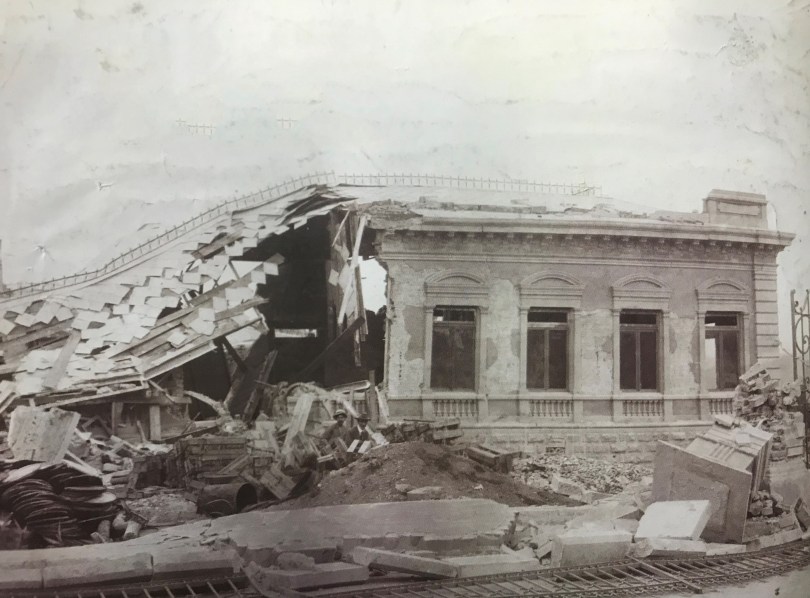 IMG_2731_InPixio 22 marzo, 2019 3966 × 2929 Terremoto de Santa Mónica, Cartago, 1910…Galería de fotografías. Costado Norte del Palacio Centroamericano de Juticia que fue totalmente destruido. La verja está tumbada sobre la acera. Hoy Colegio de San Luis Gonzaga. Rudd, 1910
