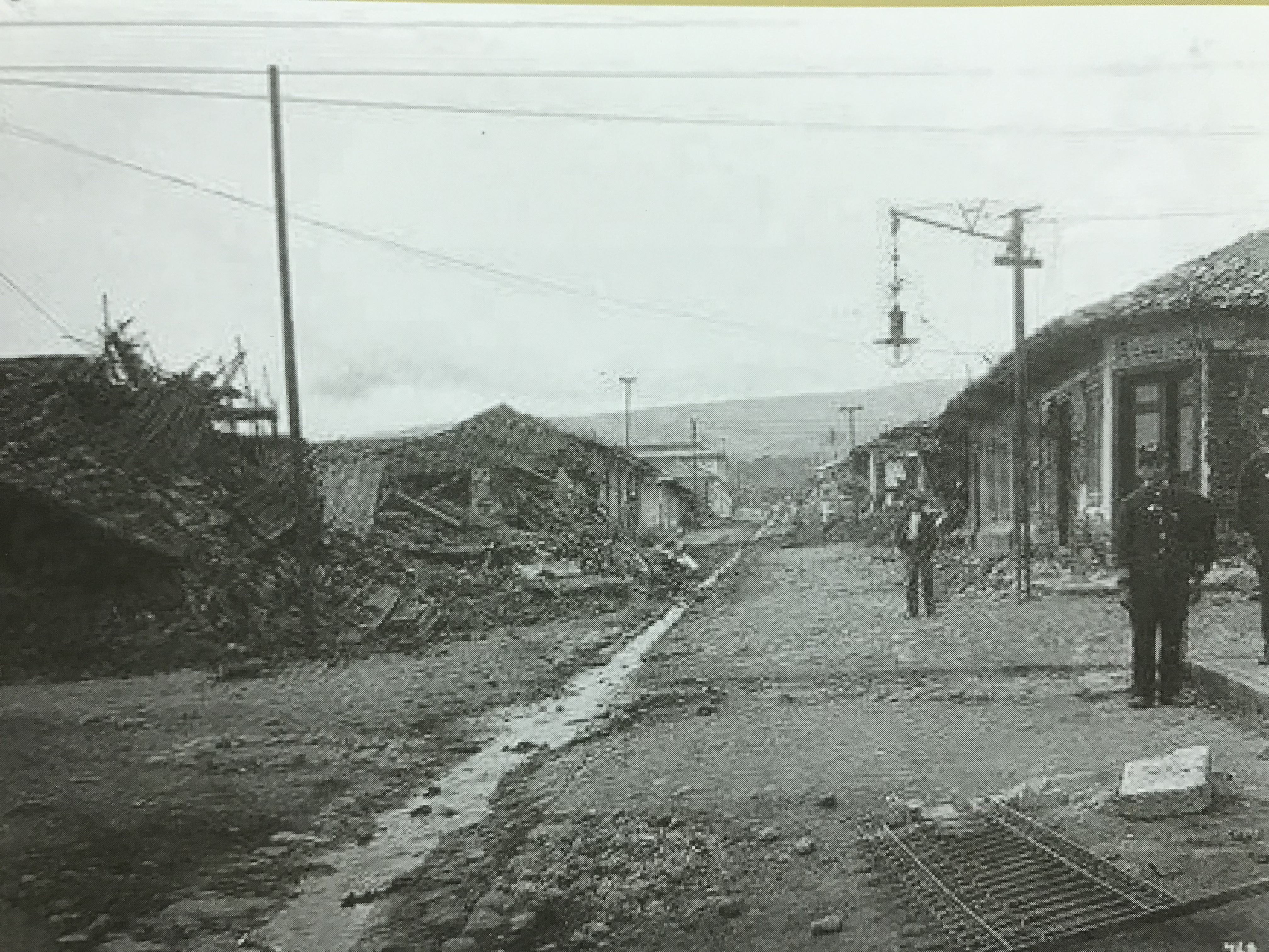 IMG_2752 22 marzo, 2019 4032 × 3024 Terremoto de Santa Mónica, Cartago, 1910…Galería de fotografías. Policias y guardas de seguridad del ejército vigilan las calles desiertas para evitar el pillaje. Rudd, 1910 9.951342 -84.053300