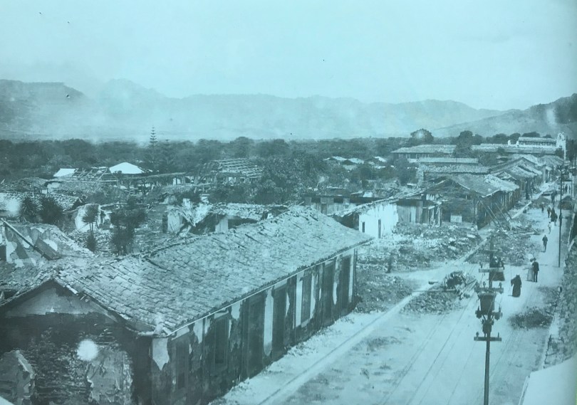 IMG_2759 (2)_InPixio 22 marzo, 2019 3917 × 2752 Terremoto de Santa Mónica, Cartago, 1910…Galería de fotografías. Toma desde el segundo piso de la casa del Dr. Pirie, la actual. Se observa el trabajo de limpieza que se ha iniciado. Rudd, 1910