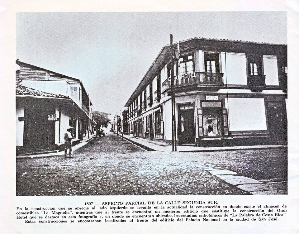 Fotografía de 1897 viendo de Avenida Central hacia el Sur.
