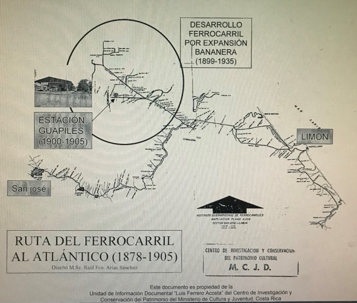 La antigua Estación del Ferrocarril en Guápiles fue construida originalmente entre los años de 1900 y 1905, siendo diseñada por ingenieros extranjeros contratados por la United Fruit Company.