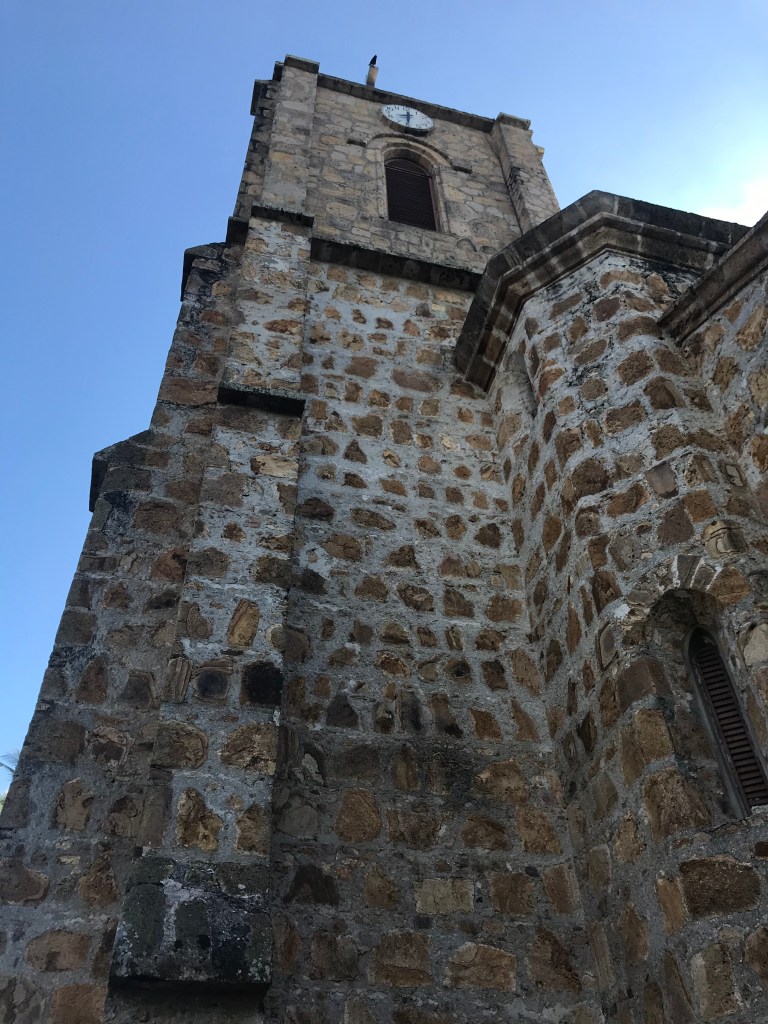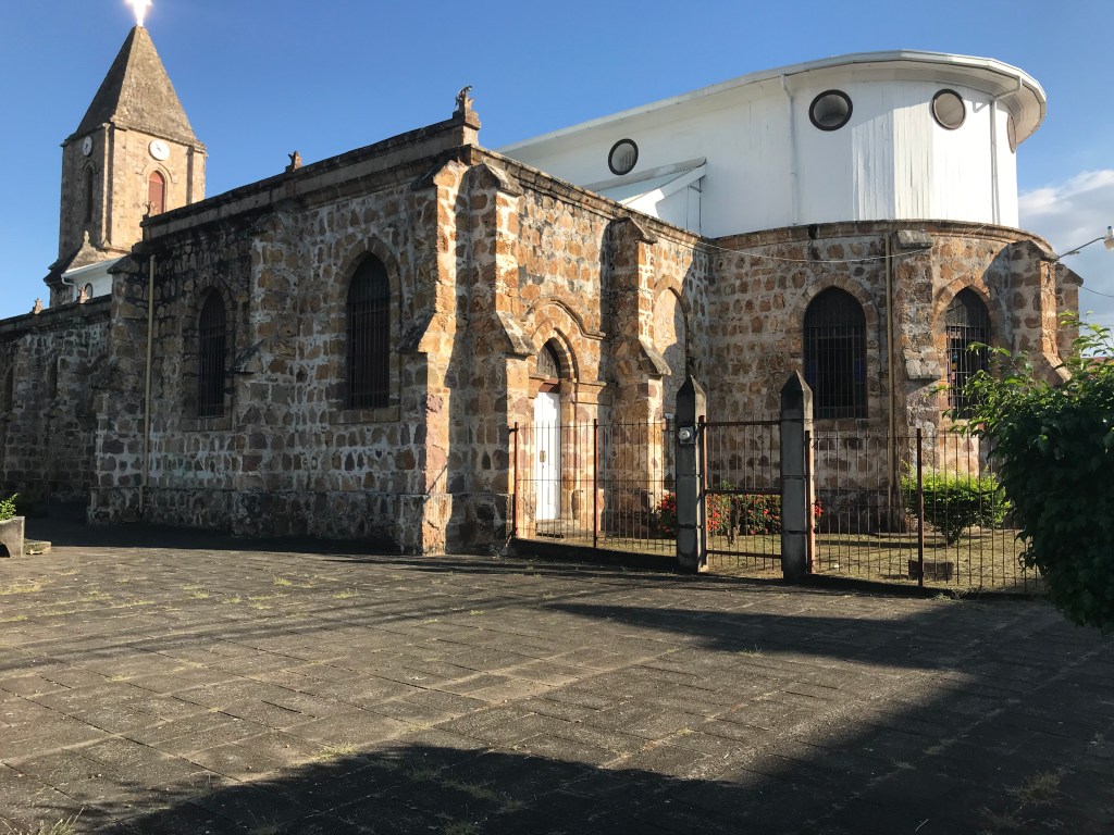 “El exterior de la iglesia parroquial es de piedra labrada y de estilo neogótico, de esbelta torre central compuesta por tres cuerpos, dos de ellos con ventanas ojivales dobles. La torre original era más esbelta, pero se daño en un terremoto. Las piedras de molejón de la fachada fueron llevadas desde Esparza y Cartago y son similares a las que se utilizaron en la fachada de la parroquia de Esparza y en el templete del cementerio de esta misma localidad. El interior es neoclásico. Tiene tres naves pintadas de blanco con molduras doradas. Los pilares son de orden dórico y de fuste estriado. La nave principal está cubierta con una bóveda de cañón construida de madera. El presbiterio es de forma semicircular y esta coronado por una cúpula circular.”