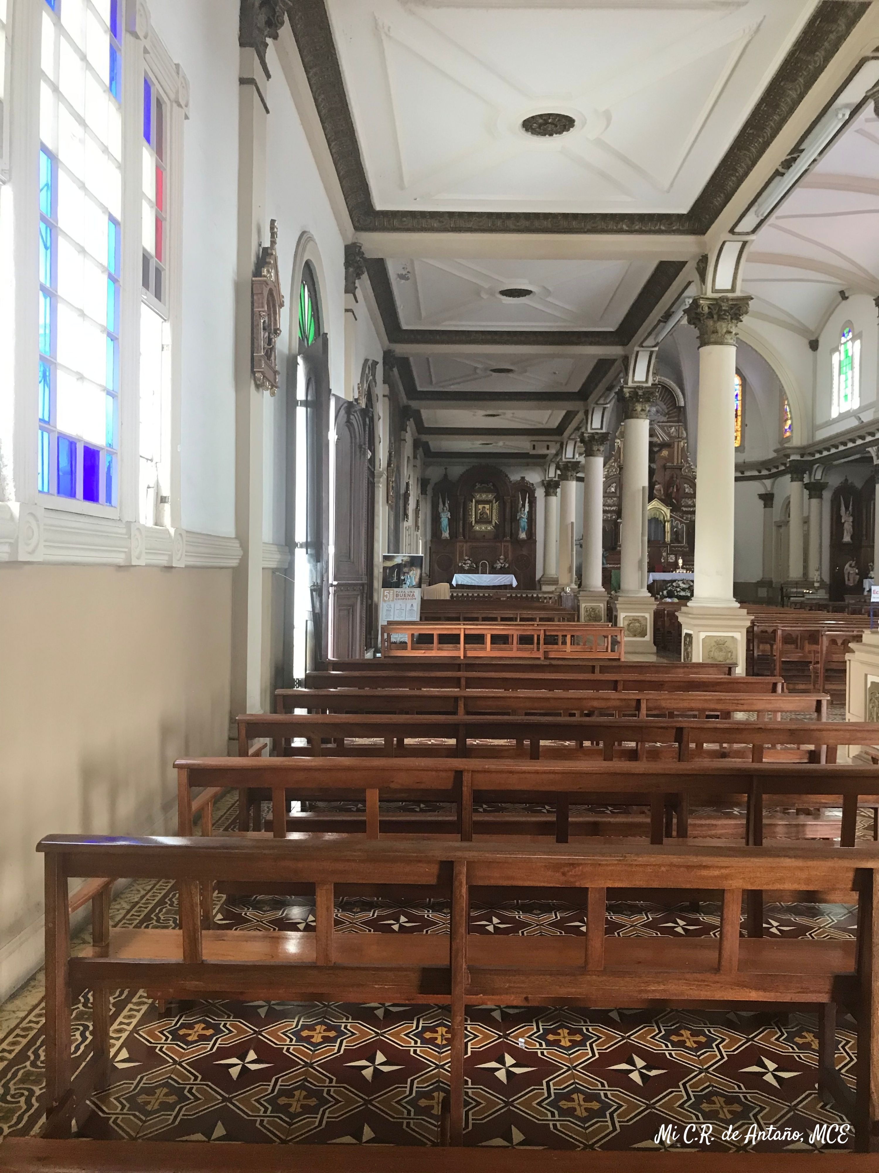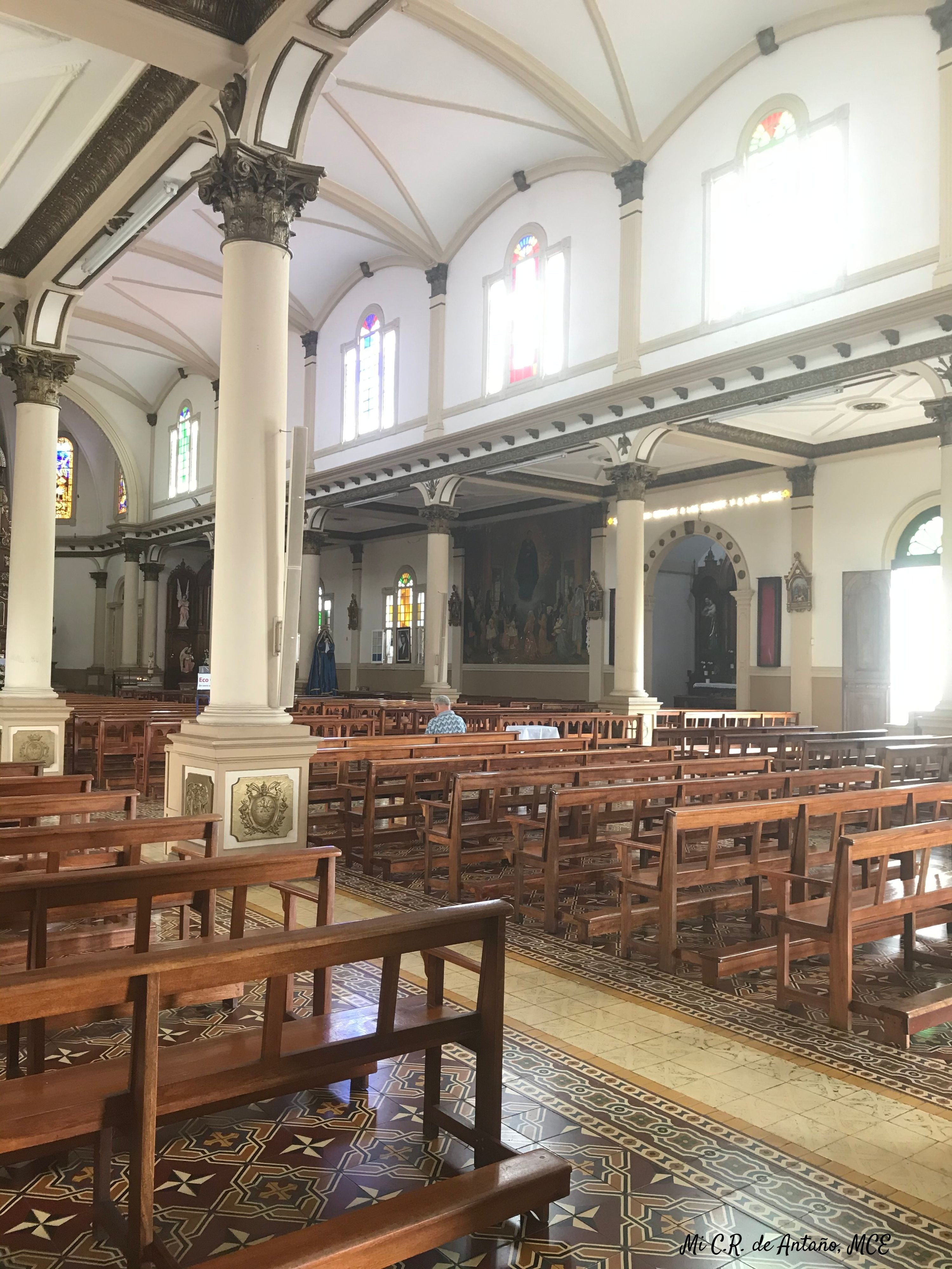 El interior de la iglesia presenta una serie de vidrieras de colores en la zona de arriba de las columnas, que se encuentran a sendos lados del pasillo central que es algo bellísimo, y numerosos elementos decorativos que llaman la atención a todos los visitantes. El altar no es muy grande pero destaca la gran cruz que se encuentra en este lugar.