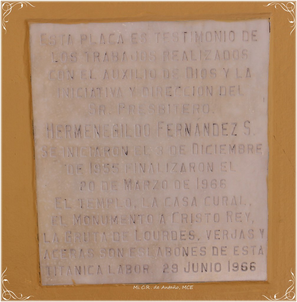 Año 1955. El 3 de diciembre siendo Cura Párroco el Presbítero Hermenegildo Fernández, se inician los trabajos del tercero y actual templo, los que finalizaron el 20 de marzo de 1966 después de la más ardua y titánica labor. Estos trabajos incluyen además la casa cural. Monumento a Cristo Rey, Gruta de Lourdes, verjas y aceras. El templo y su altar de mármol fueron consagrados por Monseñor Quesada Castro el 21 de noviembre de 1966.