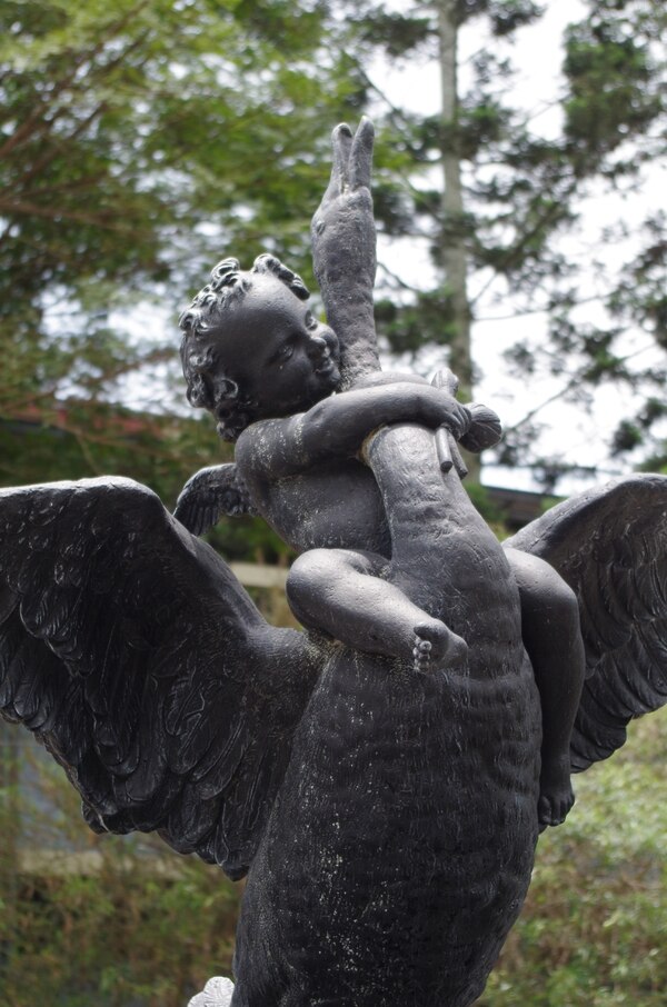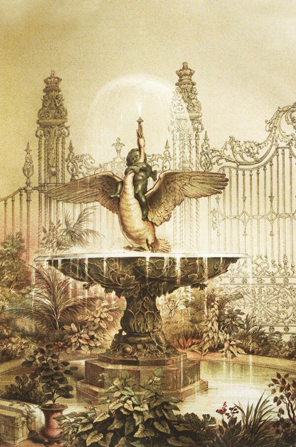 La fuente original de Cupido y el Cisne la hizo la compañía inglesa Coalbrookdale y el diseño fue del escultor John Bell. La empresa participó en la Gran Exhibición de los trabajos de la industria de todas las naciones de 1851 y allí presentó la obra de hierro fundido. En la actualidad, se encuentra en The Ironbridge Gorge Museum en Shropshire, Inglaterra.