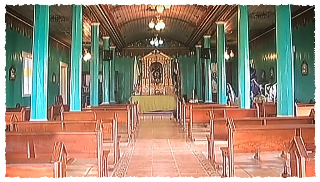 El interior del templo posee una gran belleza como coloridas pinturas del techo y paredes de madera que se mantienen intactas.