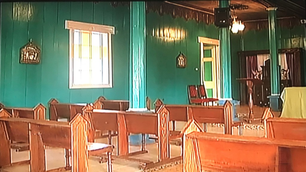 Se caracteriza por la tablilla de madera y el hierro galvanizado laminado como materiales de construcción combinados con algunos modestos gestos del neo-gótico en puertas, ventanas y bóveda.