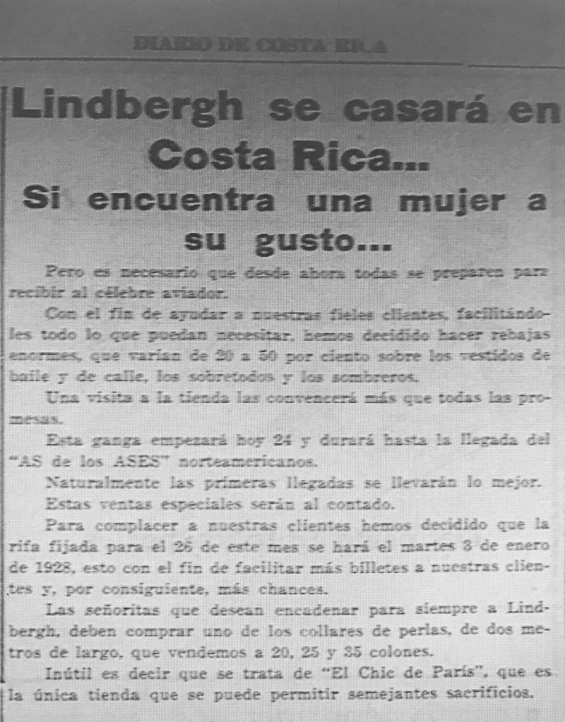ALGUNAS CURIOSIDADES DE LA LLEGADA DE LINDBERGH A C.R.: