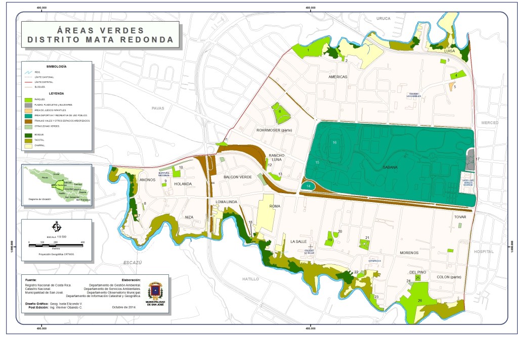 En la Zona del Parque, frente a las Ruinas, si encontramos piedra canteada en todo el perímetro; que de acuerdo a Don Rogelio Coto Monge, Historiador cartaginés, son de fines del siglo XIX, pero ocupa un espacio reducido dentro del área total de la acera, así de un ancho aproximado a los 8 metros, 2 metros con de piedra canteada y 6 metros son de adoquines de cemento, esto es válido para los sectores norte, sur y oeste del Parque, pues la parte este que da a la Calzada Colonial y a las Ruinas, no existe piedra canteada.