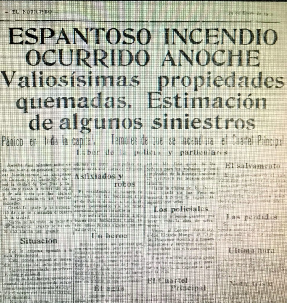 Cuando el Almacén Koberg tomaba auge y su clientela crecía notablemente en todo el país, un incendio que con inusitada violencia se desarrolló en una tienda vecina en la noche del 23 de enero de 1913, y que consumió casi toda la cuadra, lo desorganizó y obligó con serias pérdidas a interrumpir por largo tiempo sus actividades.