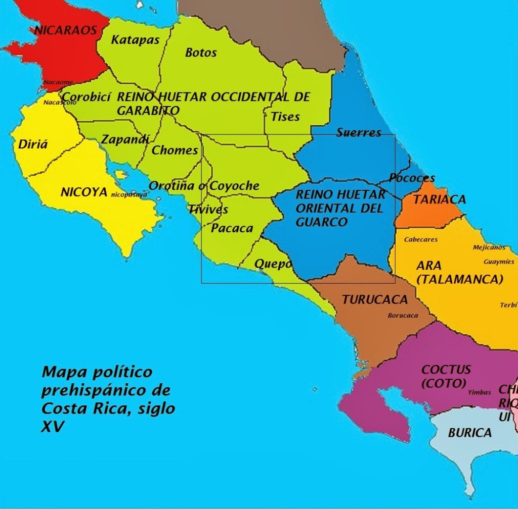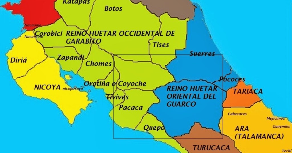 En el interior del Valle Central, existían dos importantes señoríos que conglomeraban la mayoría de los cacicazgos menores de ese territorio. El Señorío de Garabito o Reino Huetar de Occidente unificaba los pueblos del Pacífico central hasta el río Virilla, y se extendía desde Esparza hasta el río San Juan, incluyendo los territorios de los botos (entre los ríos San Carlos y Sarapiquí), katapas y tises, que eran sus tributarios.