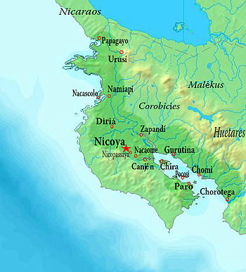 Los cacicazgos pueden ser agrupados de acuerdo a su posición geográfica. En la región del Pacífico Norte, el señorío más importante fue el de Reino de Nicoya, que también dominaba otros cacicazgos menores existentes en la zona: Nicopasaya, Nandayure, Cangel, Paro, Churuteca, Zapandí, Corobicí, Abangares, Orotiña y Chomes Nicoya se distinguía por practicar el sacrificio humano y la antropofagia ritual.