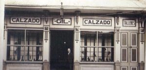 Era la primera zapatería moderna que tendría el país. La Zapatería Gil. Don Gumersindo Gil Herrero posa en la puerta de su nueva tienda.