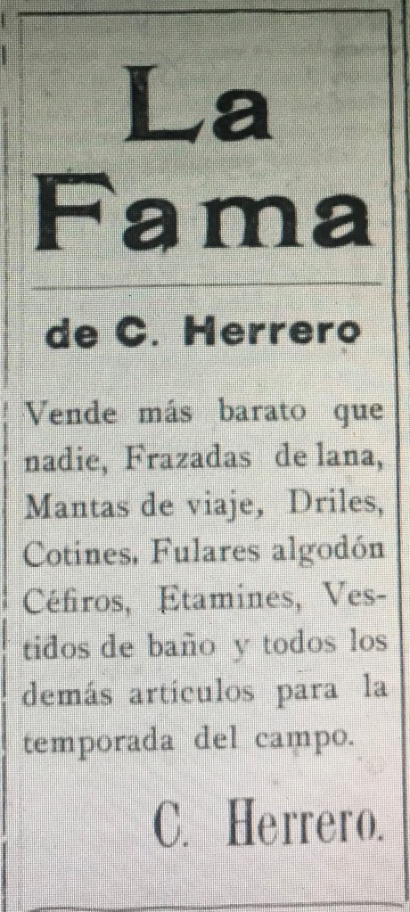 Aparentemente habían un Almacén llamado Al Siglo Nuevo con una ubicación diferente pero siempre perteneciente a la familia Herrero como veremos en el siguiente anuncio publicitario: