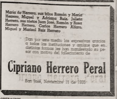 Don Cipriano Herrero del Peral muere el 11 de noviembre de 1935.
