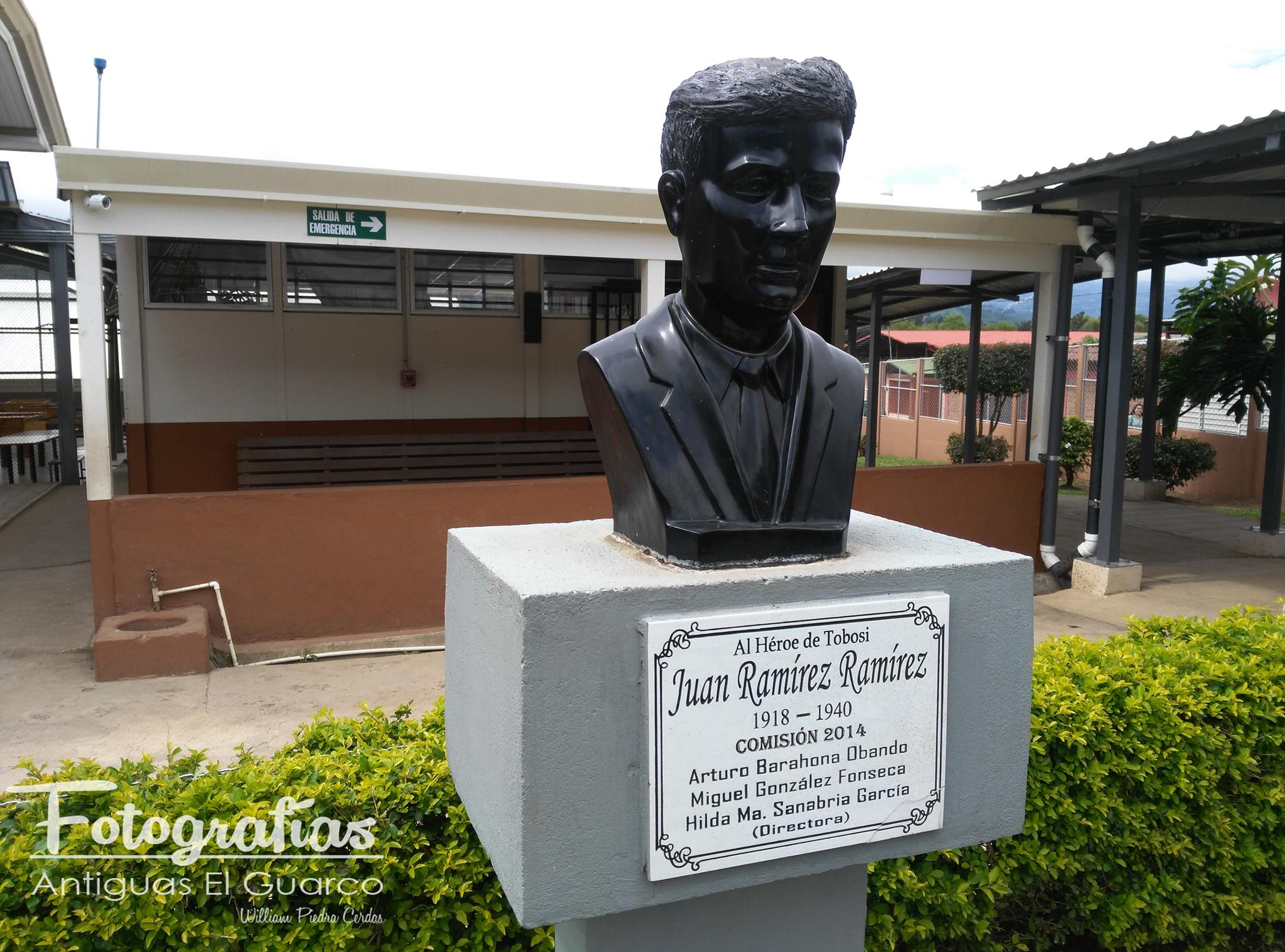 La edificación estaba lista para ser inaugurada en 1940 y se pensó bautizarla con el nombre de Manuel Piedra Quirós. Con este nombre se quería honrar a una de las personas que más se preocupó por la educación en Tobosí. Sin embargo, un hecho trágico hizo cambiar esta decisión, cuando Juan Ramírez intentó rescatar a un niño, que se estaba ahogando en un río, con tan mala suerte que fallecieron ambos. Esta situación causó hondo pesar en la comunidad y la acción heroica de Juan Ramírez, determinó que la nueva escuela llevara su nombre.
