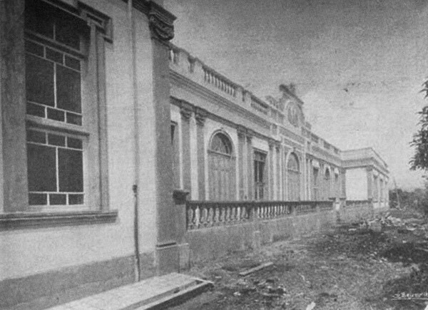 Levantado entre 1925 y 1926 por el contratista Constantino Albertazzi y sus hijos, aquel fue un edificio imponente para la época y para el humilde lugar que lo albergaba; de una elegante arquitectura ecléctica y construido en bahareque francés. Esa técnica consistía en una estructura de madera recubierta con malla metálica y luego repellada con concreto; favorecía la velocidad constructiva y brindaba sólida apariencia a los inmuebles.