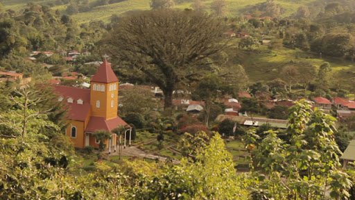 La construcción de la iglesia fue una iniciativa de la señora Rosalía Vargas Acuña, esposa de don Stanley Lindo. Los materiales fueron importados por el señor Lindo desde Alemania, uno de los destinos finales del café producido en la finca.