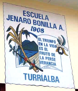 El edificio de la actual Escuela Genaro Bonilla A., fue construido a partir de 1935 bajo la dirección del Arquitecto José María Barrantes, como respuesta a la necesidad de albergar a toda la población estudiantil turrialbeña y en sustitución de la escuela de madera que ya era insuficiente.