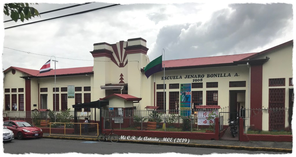 Cerca de 1908 el Presidente González Víquez hizo construir una casa de enseñanza de cuatro aulas con un costo de cinco mil colones que con el aporte de la Municipalidad de mil colones se logró ampliar en un aula más. En esta oportunidad Don Jenaro Bonilla donó un lote de madera aserrada para su construcción y los pupitres.