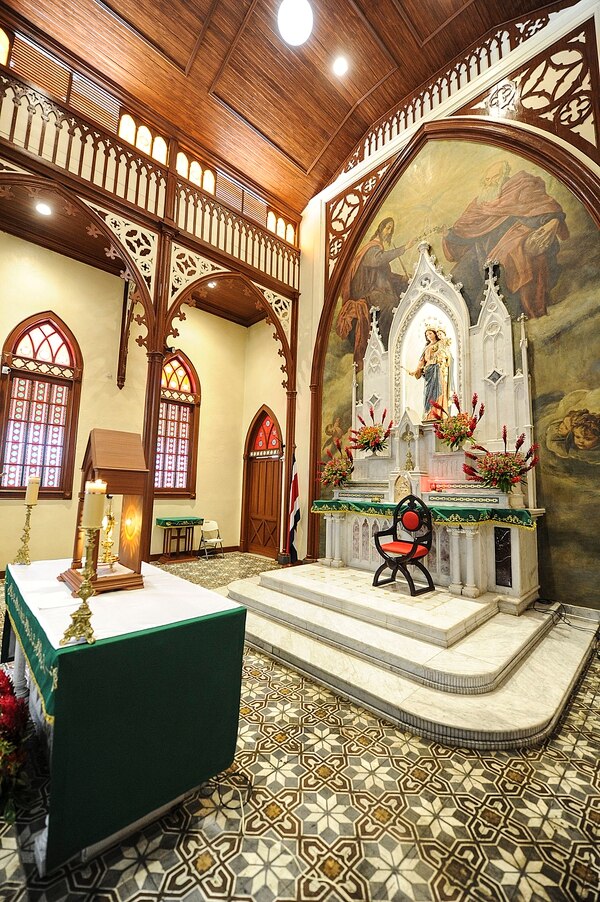 Las fachadas laterales, con sus cuarenta metros de longitud, nacen con la idea de ser elementos necesarios para la reconstrucción de una iglesia cristiana de concepción neogótica. De diseño sobrio, con la sencillez de los cartagineses que se abren paso a las nuevas concepciones de la ingeniería y de la arquitectura centroamericana de principios del siglo XX con sus propios materiales, sus artesanos y sus escasos recursos económicos.