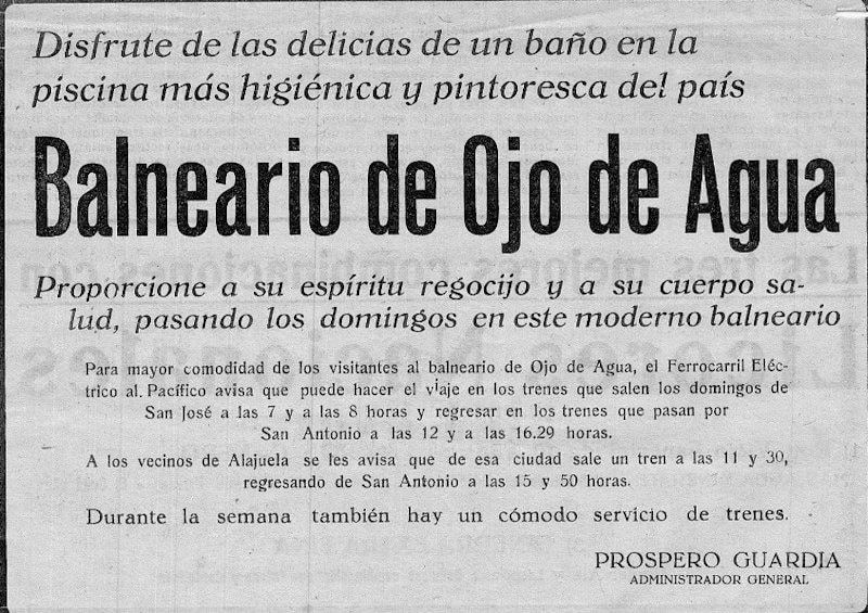 Pasaron unos 20 años y sus visitantes continuaba en aumento, por lo que la Administración del Ferrocarril, le encomendó al ingeniero civil Francisco Bolaños Varela, quién laboraba en la Institución, la construcción del Balneario de Ojo de Agua. Al no contar el Ferrocarril con personal de experiencia en este tipo de construcción, se recurrió a la cuadrilla de Escobar, compuesta por ocho trabajadores, encargado del mantenimiento de vías, con un excelente capataz llamado Marcos Arroyo, experto en albañilería y alcantarillado y tres ayudantes para un total de 12 funcionarios, personas valiosas a quienes se les acondicionó un salón para que vivieran en el lugar.