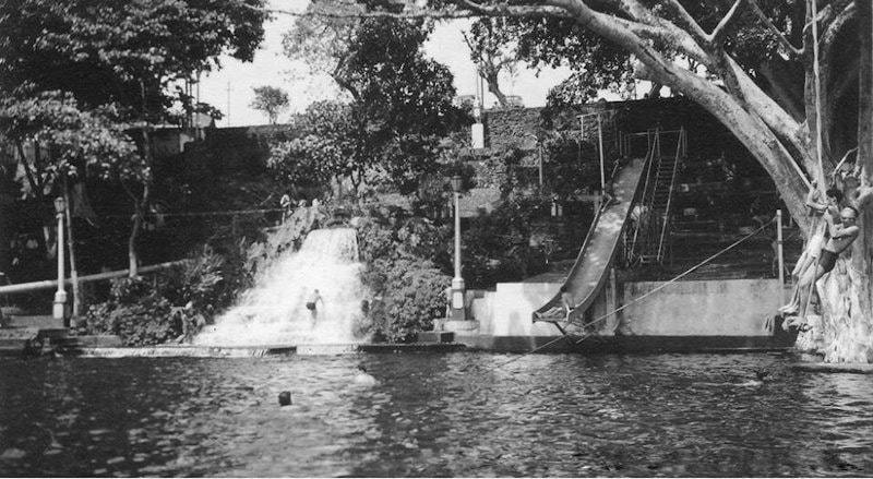 El Ferrocarril Eléctrico al Pacífico era el encargado de administrar y darle mantenimiento a la tubería y distribución de agua a Puntarenas. Luego de un crecimiento en la popularidad del lugar, construyeron un muro de 2,5 metros de alto dentro de la quebrada con el propósito de agrandar la poza y cobrar una cuota de ingreso para recuperar la inversión y a su vez darle mantenimiento y protección a toda la infraestructura.