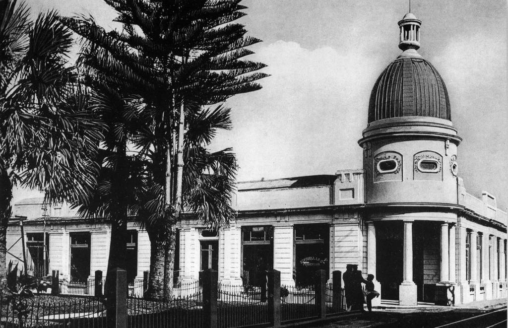 En 1917, en la esquina noroeste de avenida 3 y calle Central, se inauguró el edificio de arquitectura neoclásica de la Ferretería Espriella y Compañía. Diseñado como edificación comercial fue construido en mampostería de ladrillo; su rasgo más significativo era la cúpula de concreto armado, que culminaba el pórtico semicircular que lo abría hacia la esquina.
