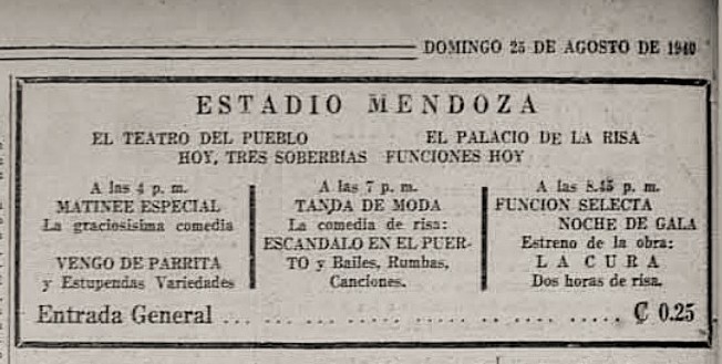 Inauguración de la temporada popular del Estadio Mendoza. Diario Costa Rica. 11-8-1940