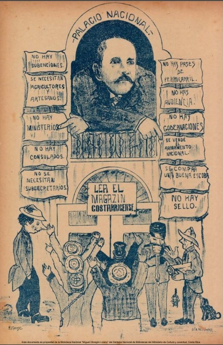 La Imprenta y Librería Alsina se ubicaba 300 metros al norte del Teatro Nacional, en pleno corazón de la capital, sobre Avenida 3. Nótese las calles de adoquines. Fotografía de Manuel Gómez Miralles.