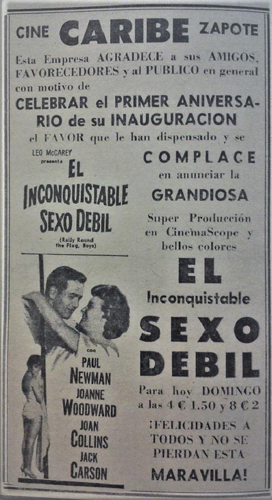 El Cine Caribe se ubicaba en Zapote y tuvo su apertura en el año 1959.