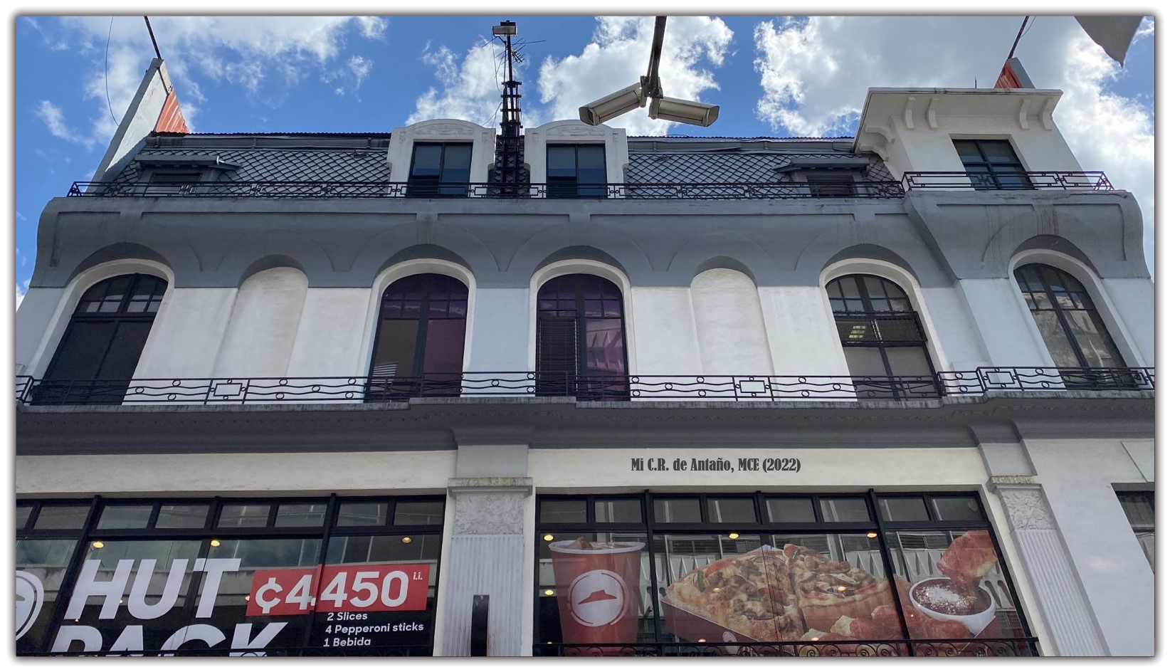 De estilo Art-nouveau tardía, este edificio ocupa la mitad del predio original con frente a la Avenida Central y es diseño del ingeniero-arquitecto costarricense Ernesto Castro Fernández, único de nuestros viejos profesionales graduado allá en París, en su Escuela Especial de Arquitectura. De ahí también, la parisina apariencia del edificio, notable sobre todo en la cubierta metálica de tejuelas romboidales que cierran el ático o cuerto piso, y en las decoradas buhardillas que lo ventilan e iluminan.
