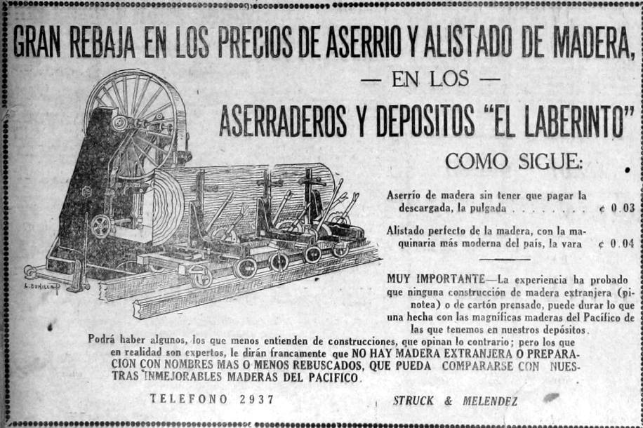 Al lado izquierdo se observa parte del rótulo del Aserradero Lumber & Struck (Fotografía de Jorge Arturo Vindas).